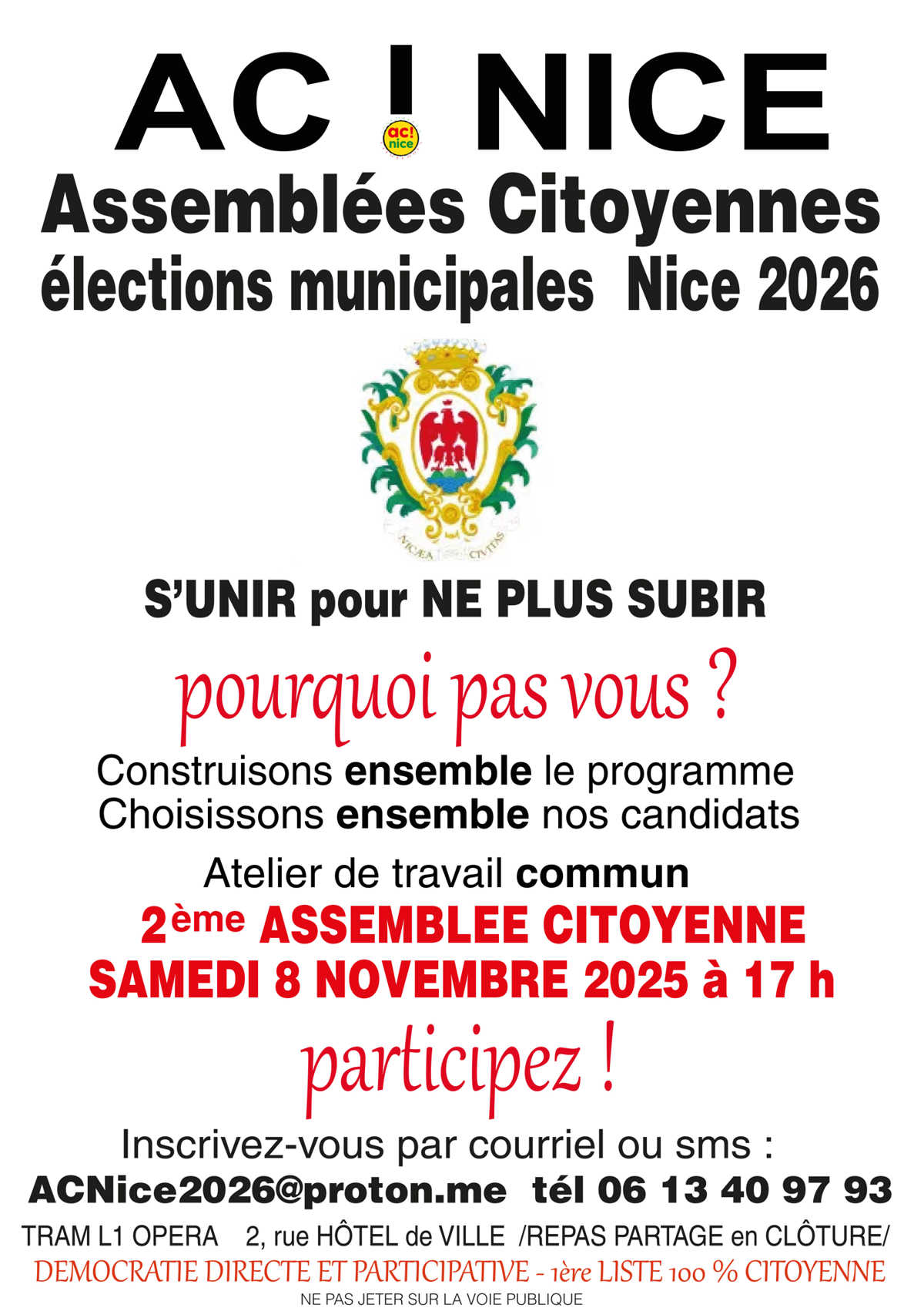 L’entrée est libre, mais une contribution sous la forme d’une adhésion ou d’un don à l’association AC ! Nice pour financer l’organisation des assemblées sera proposée.